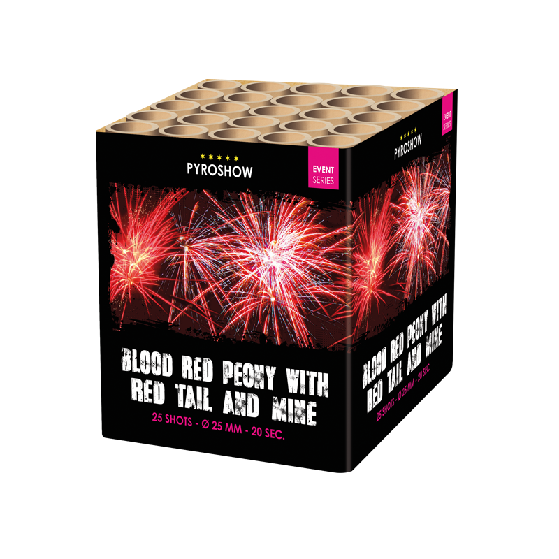 Blood Red Peony w.Red Tail and Mine Goedkoop vuurwerk kopen bij Vuurwerkwinkel Apeldoorn