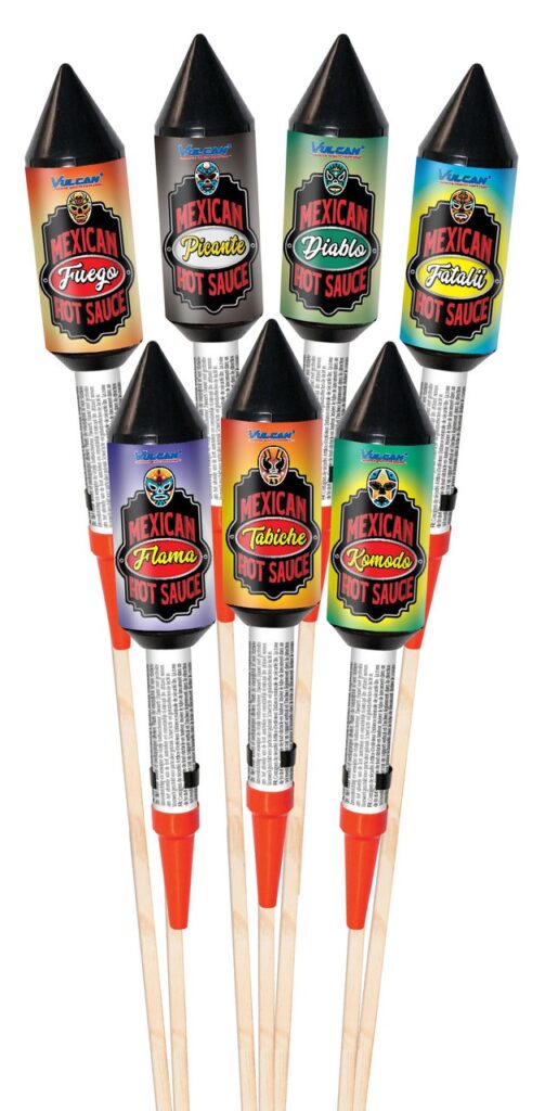 7- delig vuurpijlen assortiment met een bijzonder smaakvol en pittig design. Chili Con Bang Rocket assortment Goedkoop vuurwerk kopen bij Vuurwerkwinkel Apeldoorn