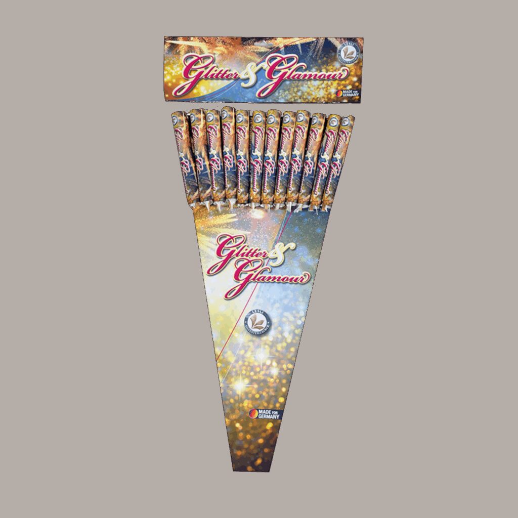 n n12 Stab-Raketen mit Blitzlichtern und kraftvollen Effekten in Rot, Grün, Blau und Lila.nDer Artikel enthält eine Tragehülse. n n Lesli Vuurwerk Glitter & Glamour Goedkoop vuurwerk kopen bij Vuurwerkwinkel Apeldoorn