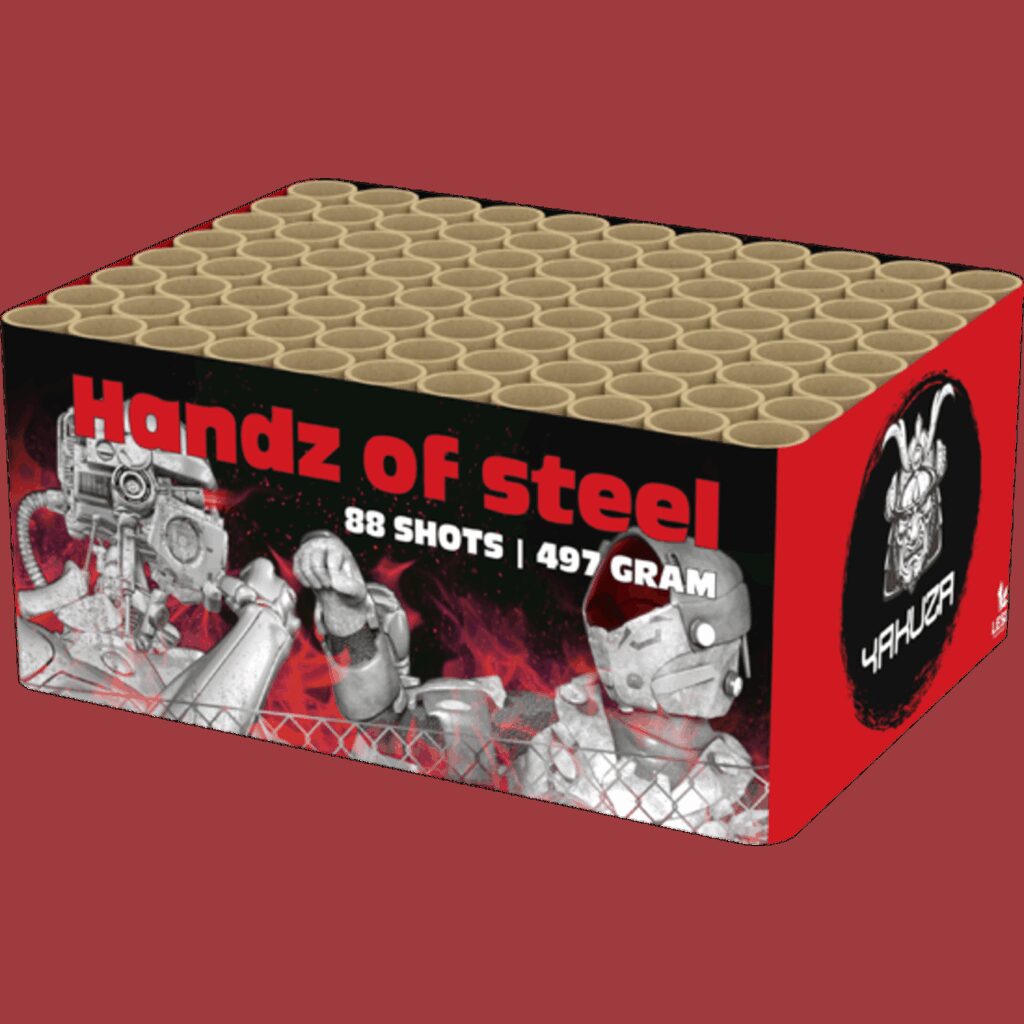 n n500-Gramm-Cakebox mit ganzen 88 Schuss, inklusive Finale. Perfekt für eine unvergessliche Silvesterparty! n n Lesli Vuurwerk Handz Of Steel Goedkoop vuurwerk kopen bij Vuurwerkwinkel Apeldoorn
