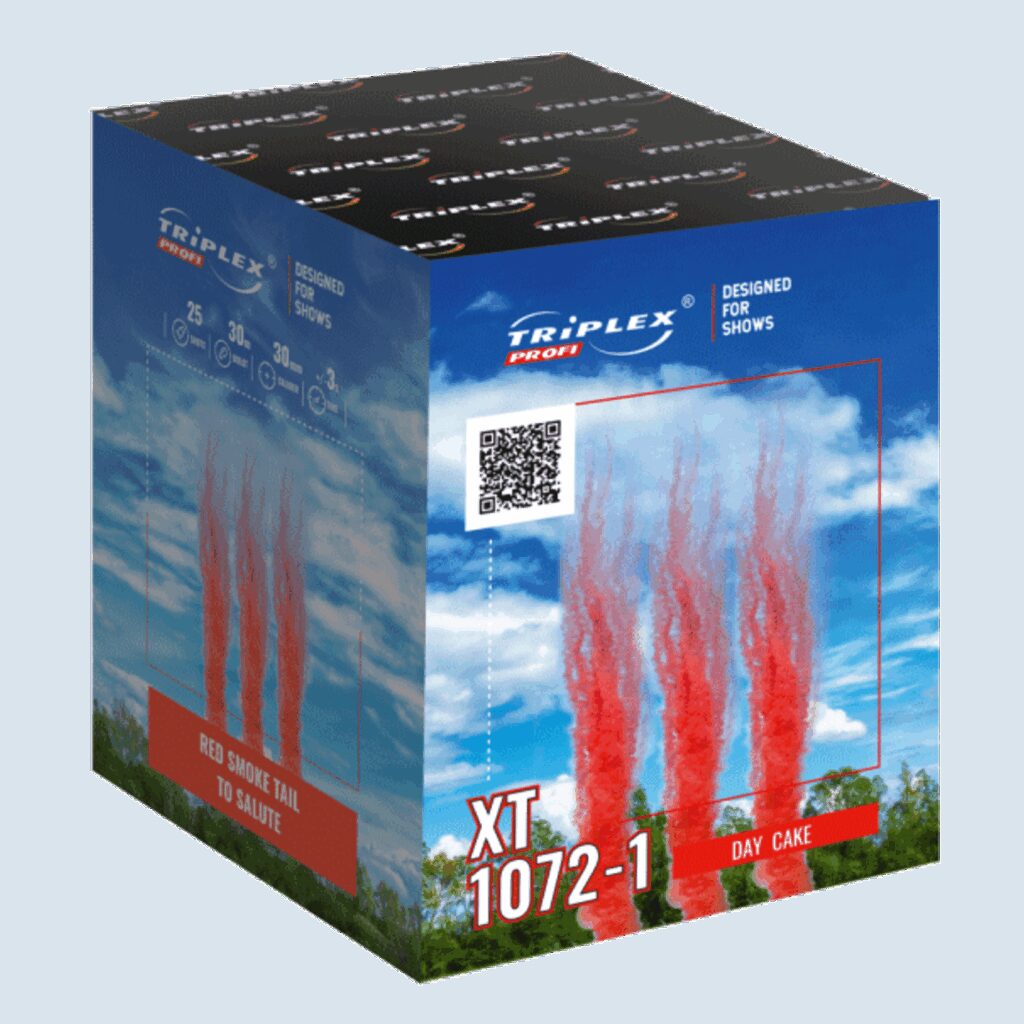 n nRoter Rauch mit Salutschlag! n n Triplex Fireworks XT1072-1 Day Cake Goedkoop vuurwerk kopen bij Vuurwerkwinkel Apeldoorn